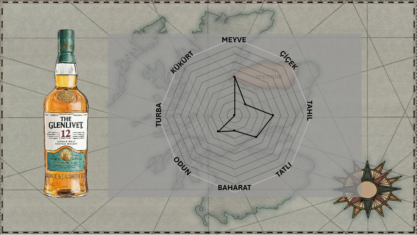 Glenlivet 12, karmaşık katmanlar peşinde koşmak yerine içilebilirliği merkeze koyuyor. Turbalı ya da yoğun şeri karakterli viskilerden uzak, daha meyvemsi ve zarif bir profil sunuyor. Yeni başlayanlar için biraz fazla güvenli bir başlangıç noktası; deneyimli içiciler için ise malesef sıkıcı kalacaktır. Avrupa’da genellikle 35–40€ bandında bulunabiliyor. Günlük içim, misafir ağırlama veya malt dünyasına giriş için bir seçenek olabilir.