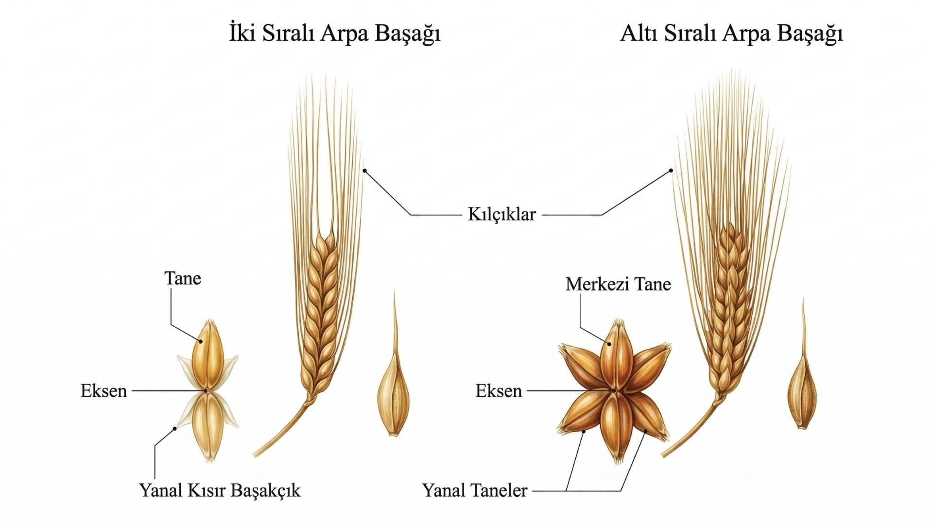 Arpa başağındaki her düğümde üç adet başakçık potansiyeli bulunur. Altı sıralı arpada (Hordeum vulgare) bu üç başakçığın tamamı tane bağlarken, iki sıralı arpada sadece ortadaki başakçık gelişir. Bu durum, iki sıralı arpanın daha dolgun, daha iri ve daha homojen tanelere sahip olmasını sağlar. İskoç viski endüstrisi, daha yüksek nişasta oranı ve daha düşük protein seviyesi nedeniyle neredeyse tamamen iki sıralı arpayı tercih eder.